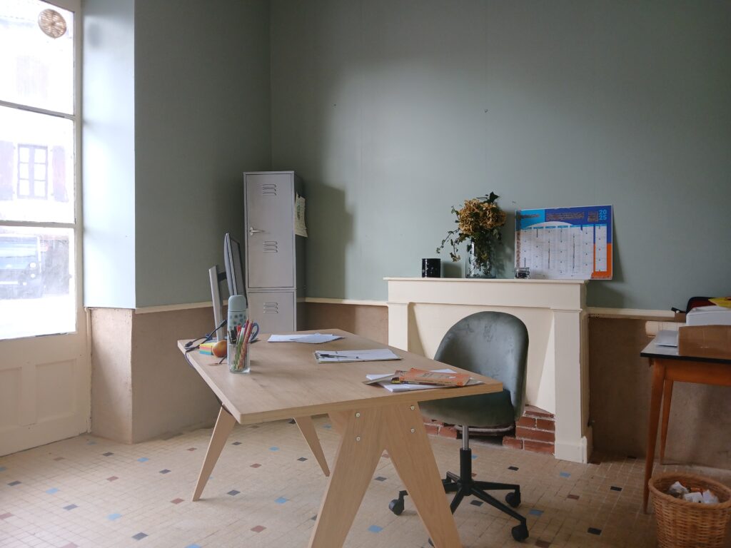 Faites comme nous, relookez et aménagez votre nouvel espace de travail ! En centre de village, à proximité de la boulangerie et de l’épicerie associative.